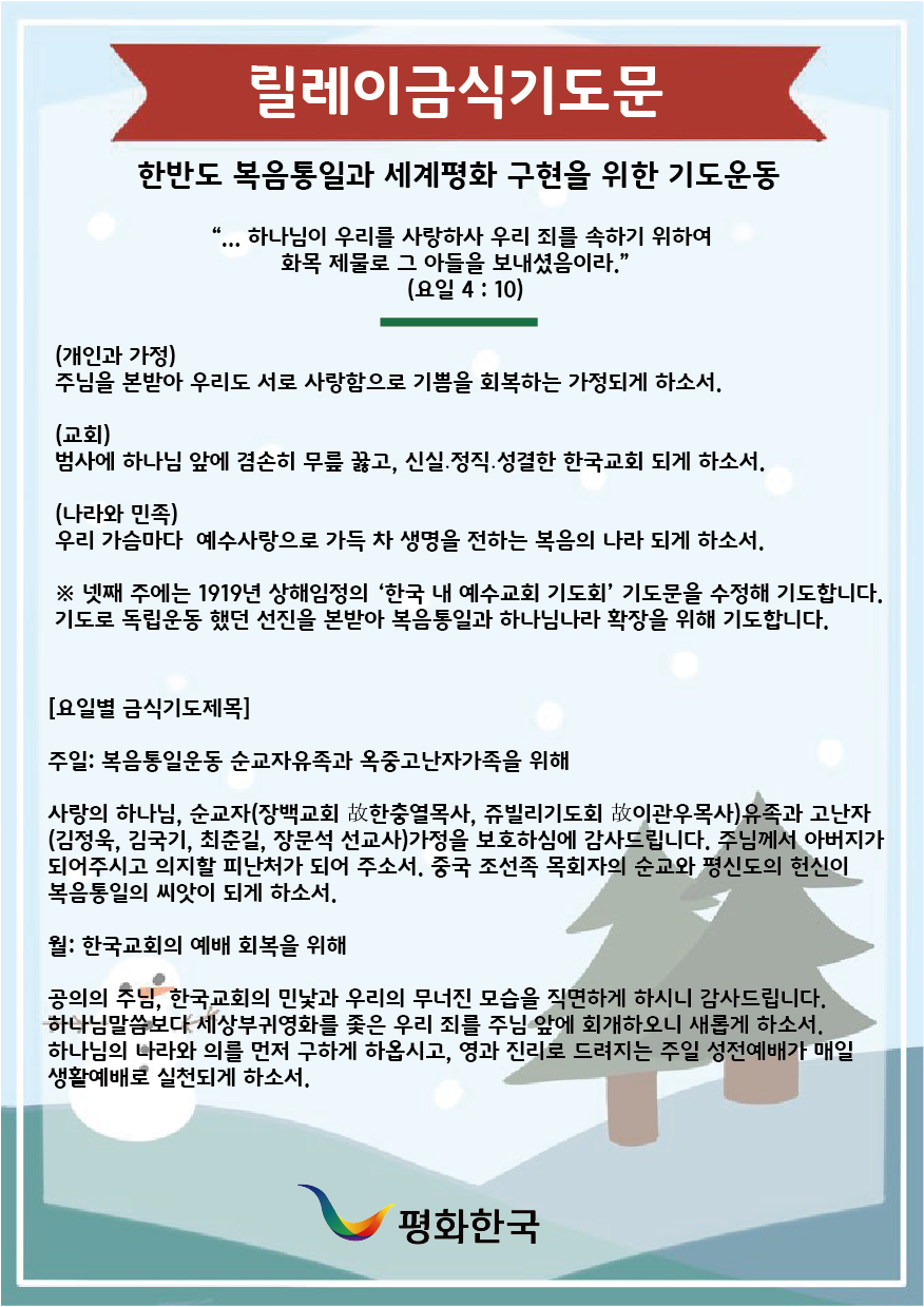 평화한국 2020년 12월 릴레이금식기도문입니다.