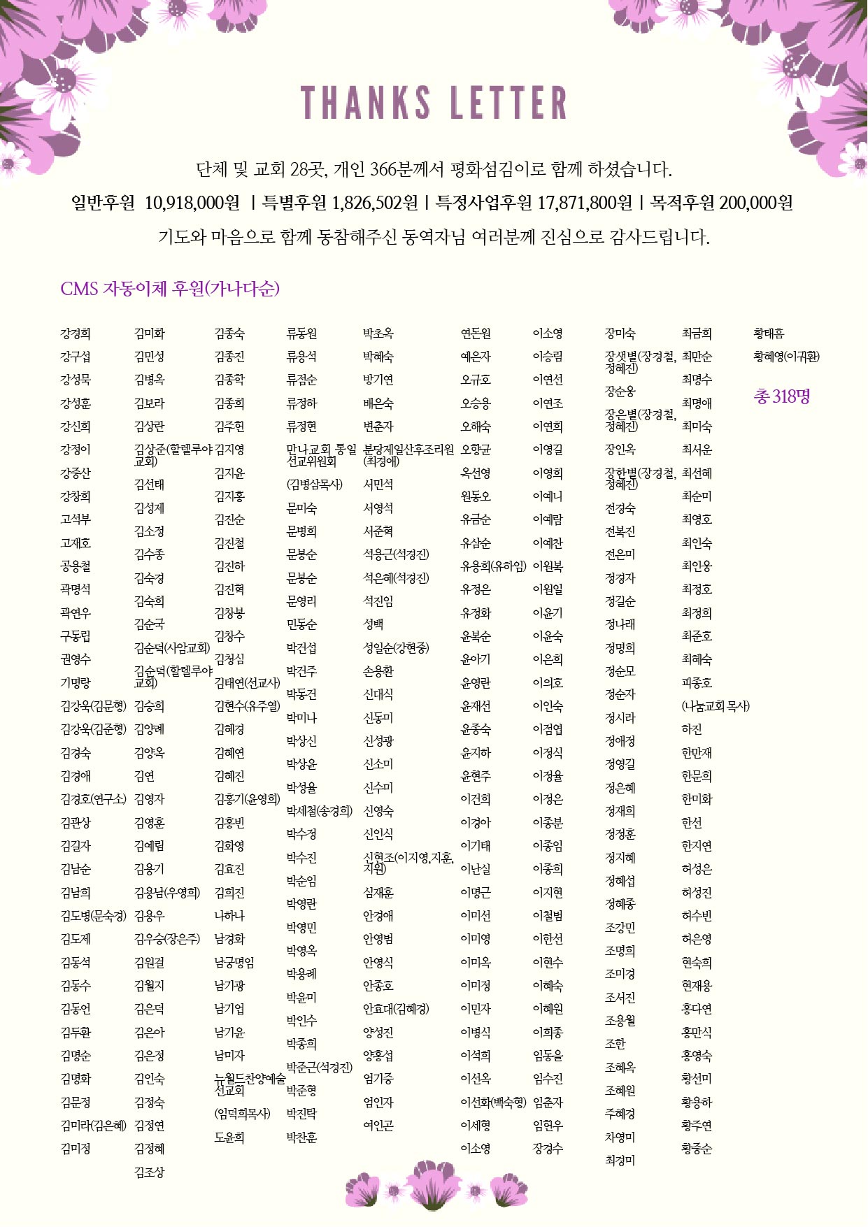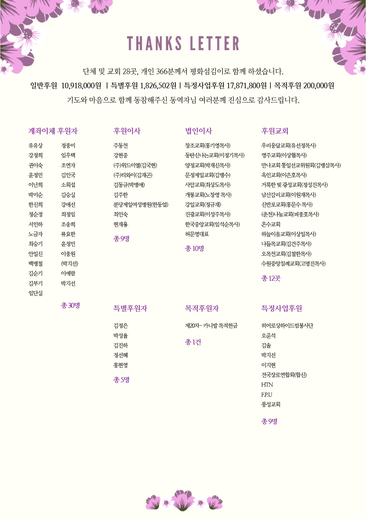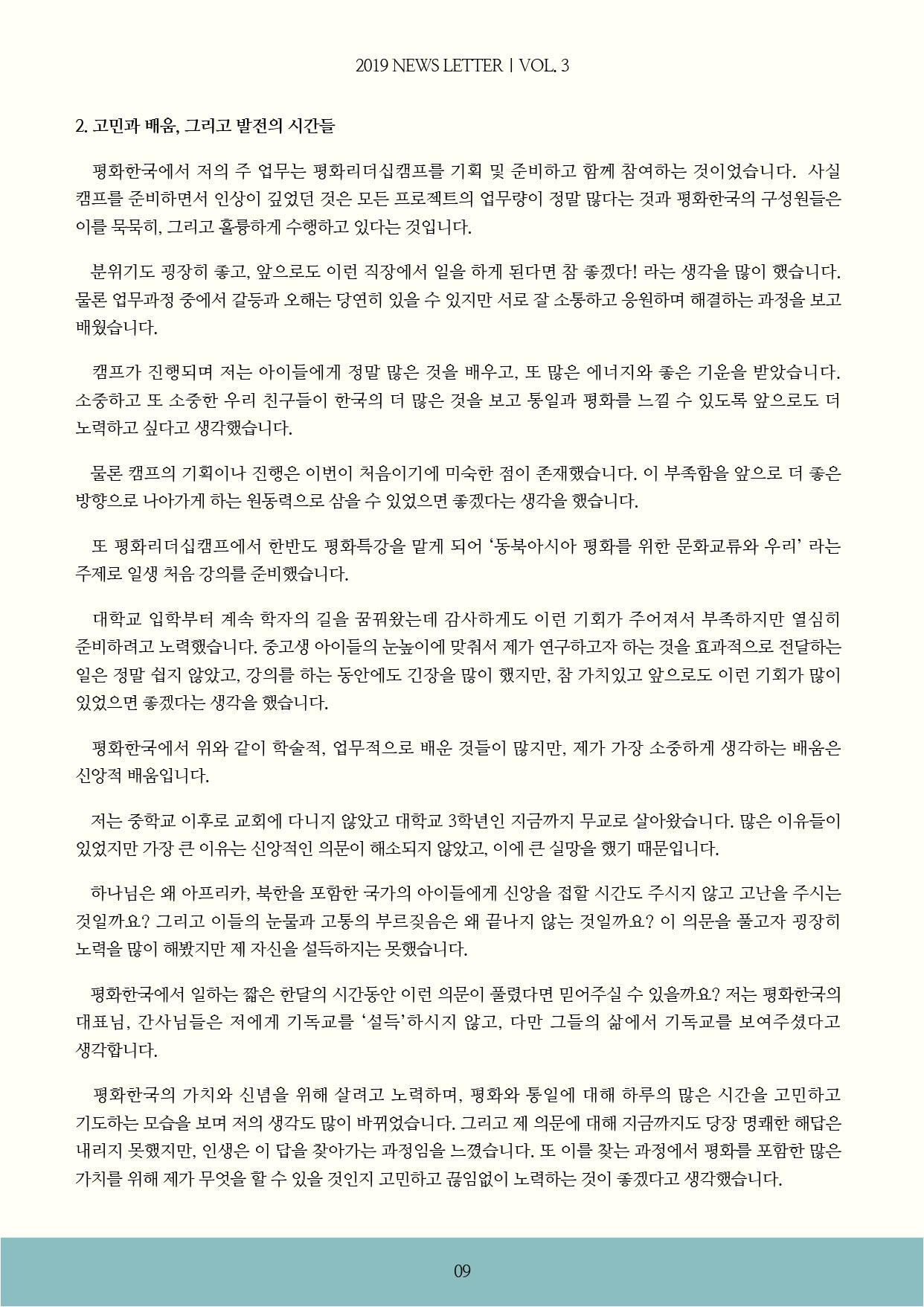 [2019] 평화한국 NEWS & THANKS LETTER (2019.9월)